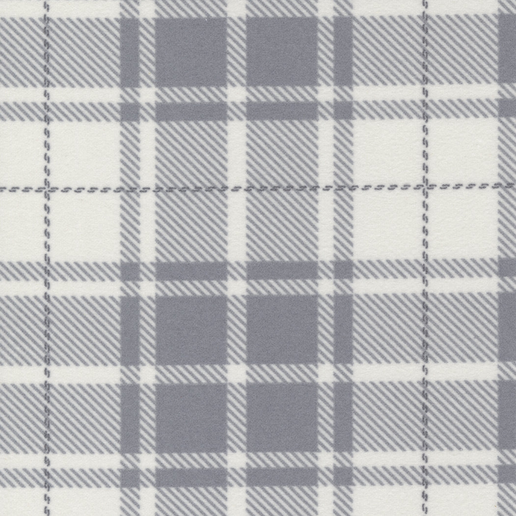 Ajaton ja lämmin harmaa flanellikangas Autumn Gatherings -kokoelmasta. Hienovarainen ruutukuosi tekee kankaasta erinomaisen valinnan perinteisiin tilkkutöihin, taustakankaaksi tai lämpimiin tilkkupeittoihin. Pehmeä, harjattu pinta tuntuu miellyttävältä ja tuo projekteihin kodikasta ilmettä.