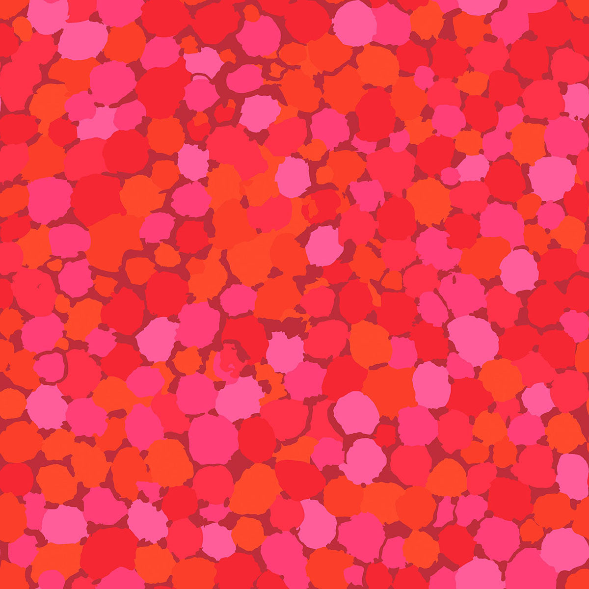 Kaffe Fassett Collective Reflections Red -puuvillakangas, jossa pilkkumainen kuvio punaisen ja vaaleanpunaisen sävyissä.