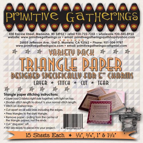 Suunniteltu erityisesti viiden tuuman charm pack -kankaille, nämä ovat nopea, helppo ja tarkin tapa tehdä kolmioita. Paketissa on 75 arkkia, 15 arkkia kutakin kokoa: ½", ¾", 1", 1½".