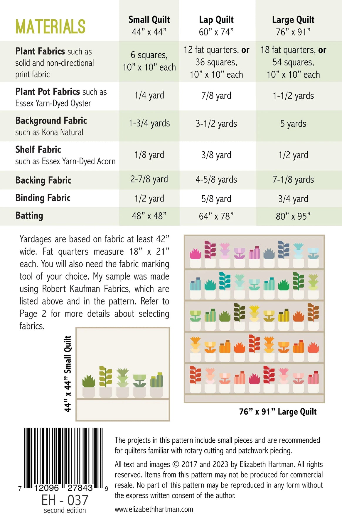 Elizabeth Hartman Greenhouse EH-037 tilkkutyöohje – moderni kasviaiheinen tilkkutyö, ruukkukasviblokit