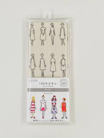 Lecien Cosmo 100 Ne-San – Kazue Nakajima "100 Ladies" embroidery panel fabric, light gray