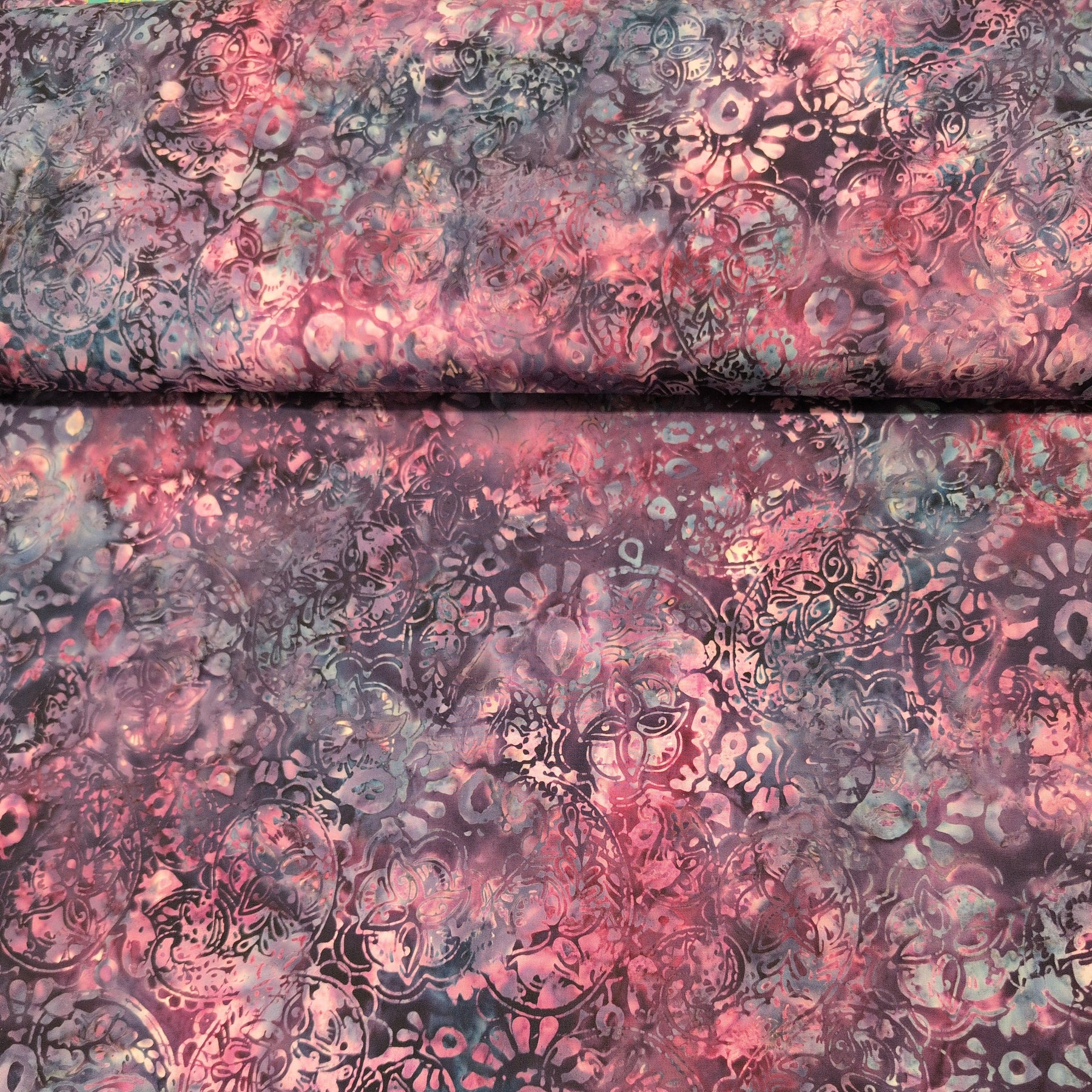 Floral Paisley Plum B3926 from Tonga Batiks Chateau collection is a hand-dyed cotton fabric, where beautiful paisley patterns, leaves and nature-inspired floral silhouettes stand out against a layered background of brown and oak tones. The batik technique creates changing nuances on the surface - sometimes soft, sometimes more intense - making each piece of fabric unique.