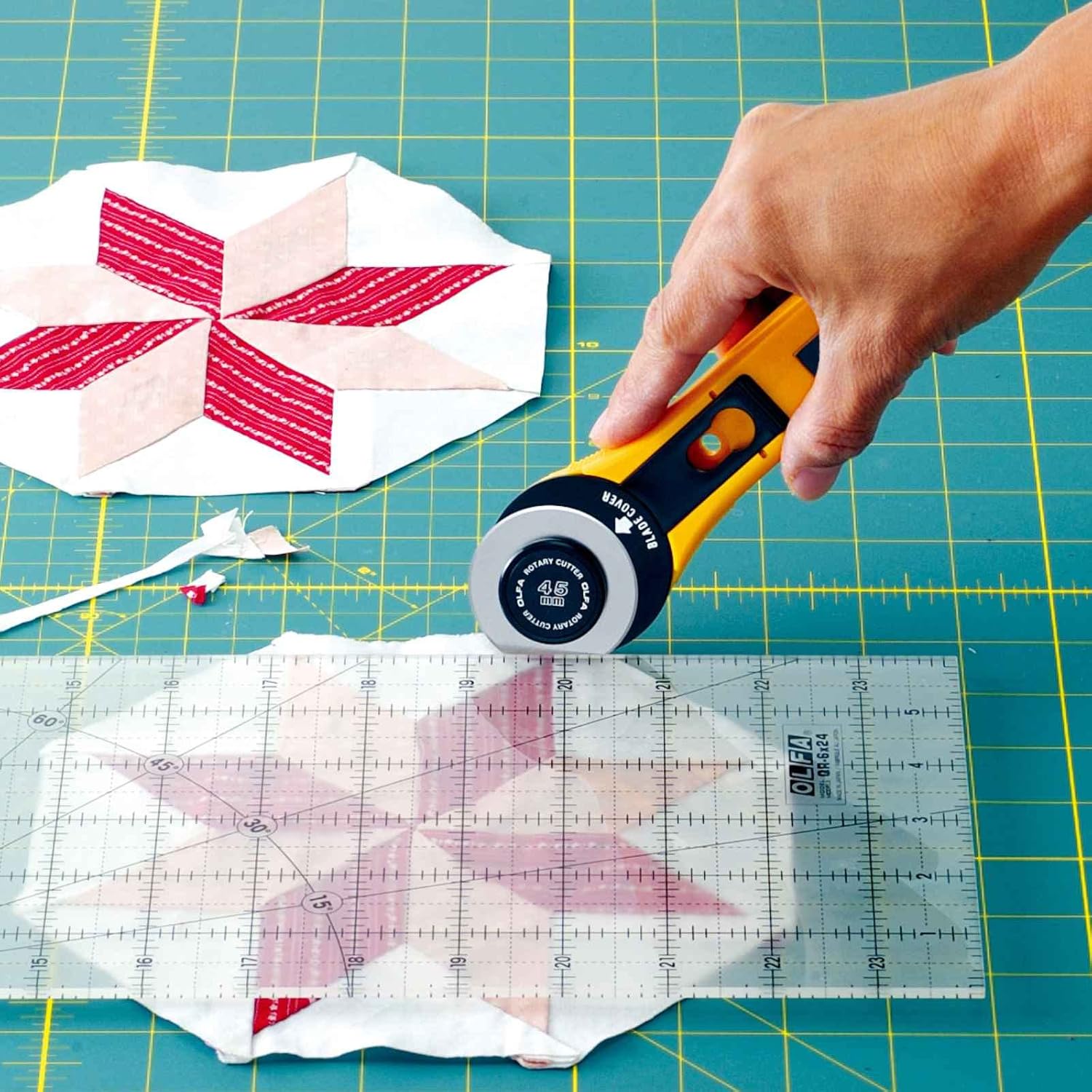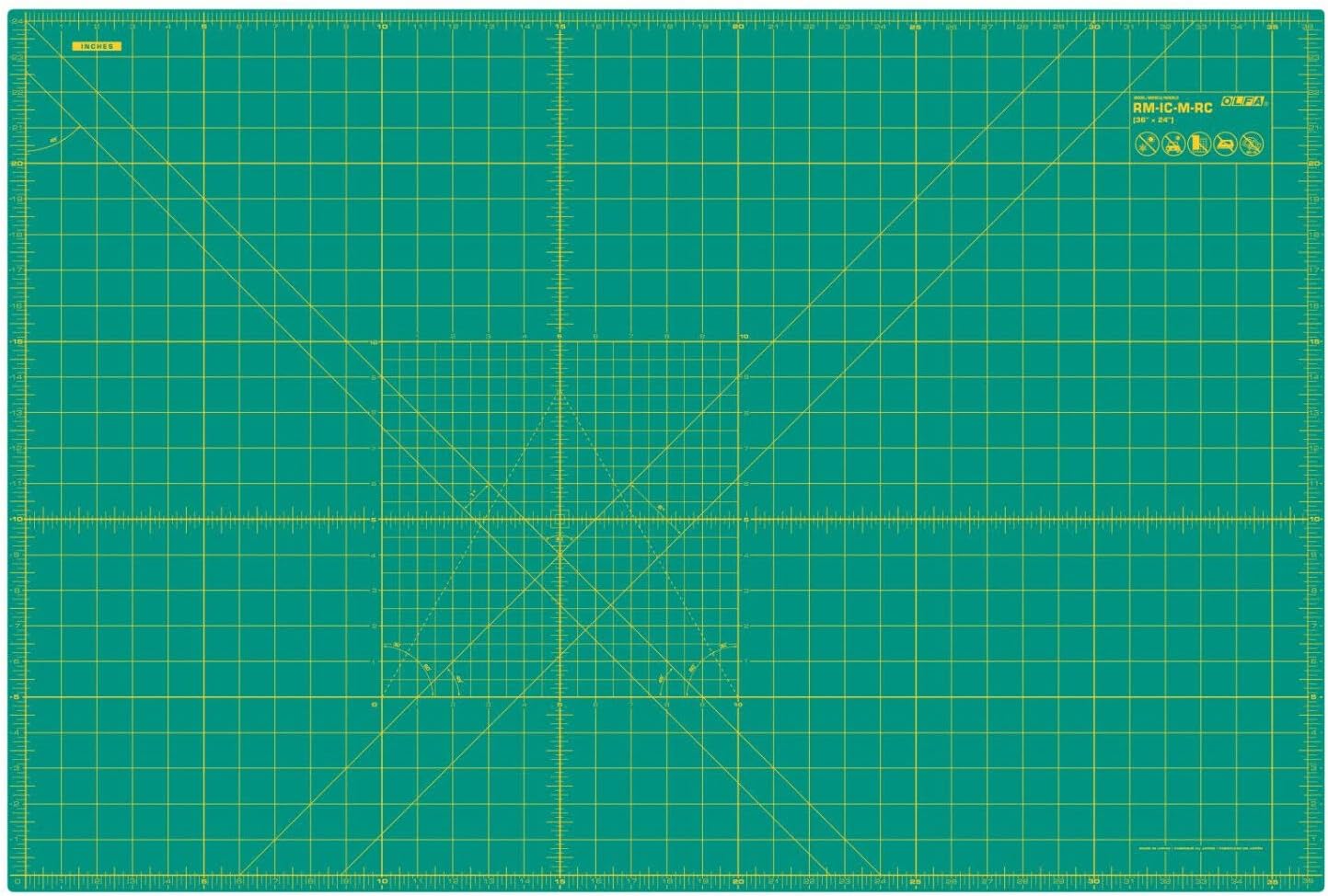Det finns tydliga måttabeller på båda sidor av basen i både centimeter och tum, vilket gör det enkelt att följa internationella riktlinjer. Dessutom har skärbasen en vinkelskala för fassnitt.
