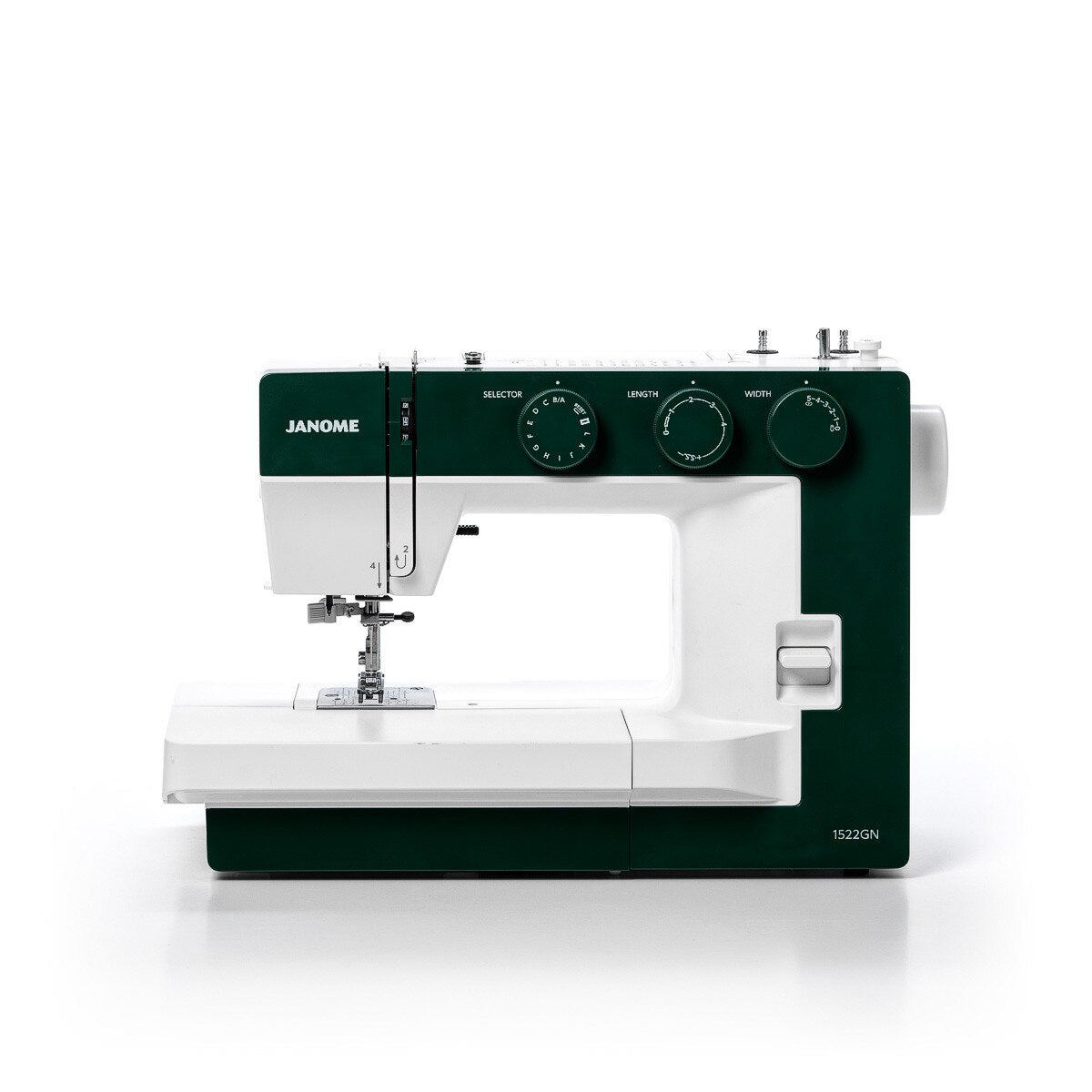 Det breda friarmsbordet erbjuder gott om arbetsyta, och den inbyggda LED-belysningen säkerställer god sikt under sömnad. Janome 1522 Green är utrustad med en klassisk vertikal spole (CB) och två trådrullshållare, vilket möjliggör en mängd olika sömnadstekniker.